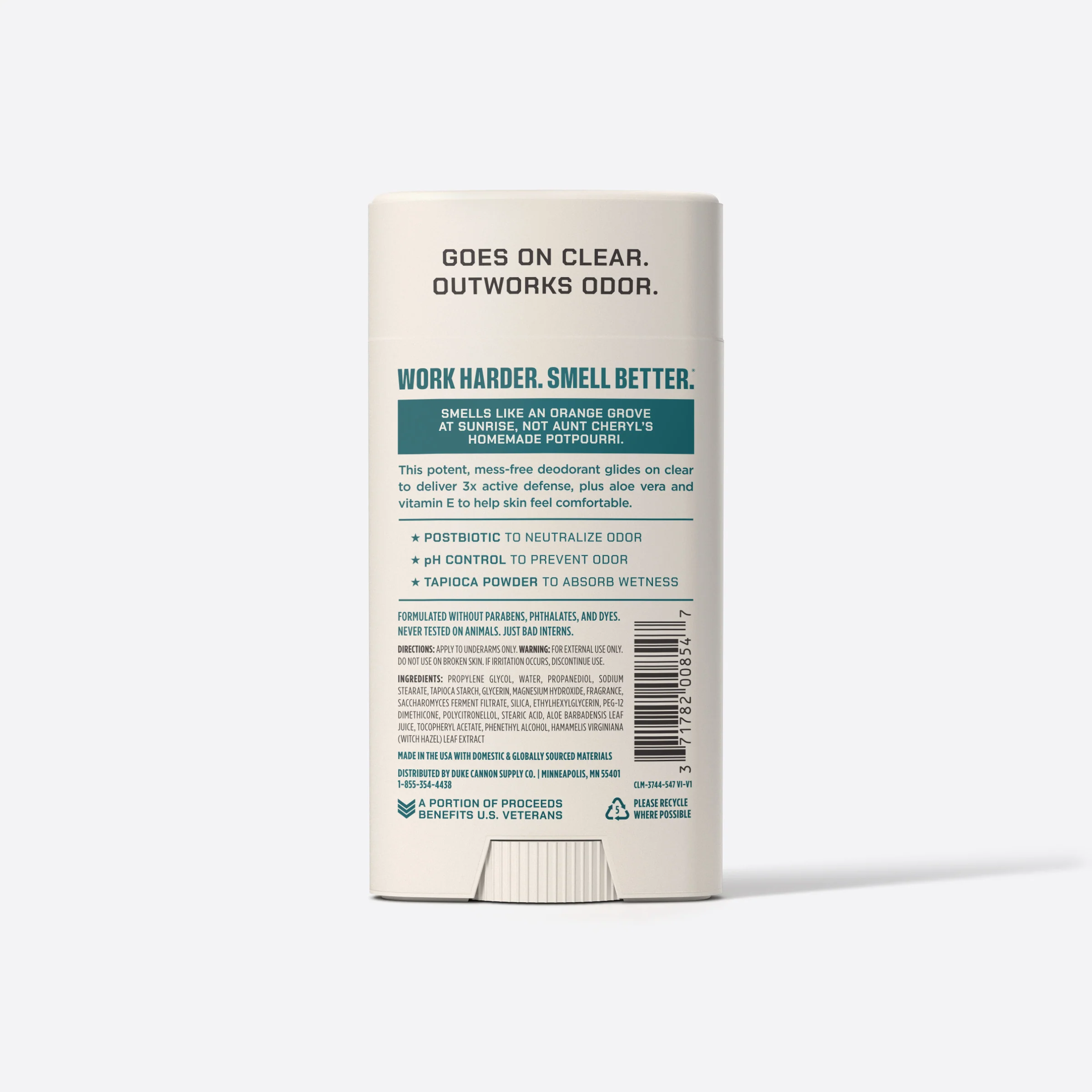 Duke Cannon lives by a simple motto: work hard, smell better. While most men find it difficult to do both at the same time, Duke Cannon has a hackāthis potent aluminum-free menās deodorant. It glides on clear for mess-free odor defense that works as hard as you do and contains soothing aloe and vitamin E to help skin feel at ease.